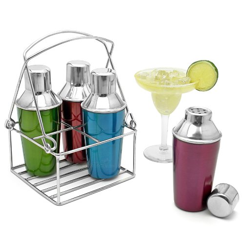 Good things come in small packages, and these adorable mini martini shakers are proof. Take it from us, single servings are sometimes the sweetest. 4 spirited colors, these stainless steel cocktail shakers arrive as a delightful set. The included portable party caddy makes displaying and transporting.